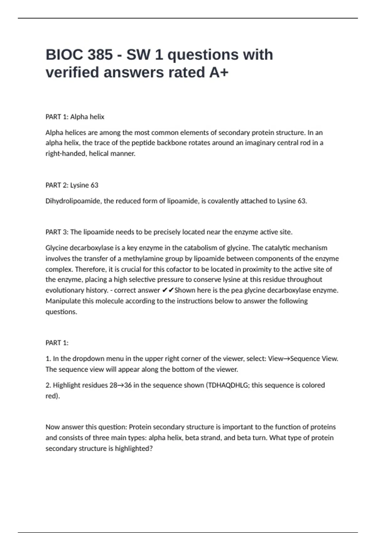 BIOC 385 - SW 1 questions with verified answers rated A+