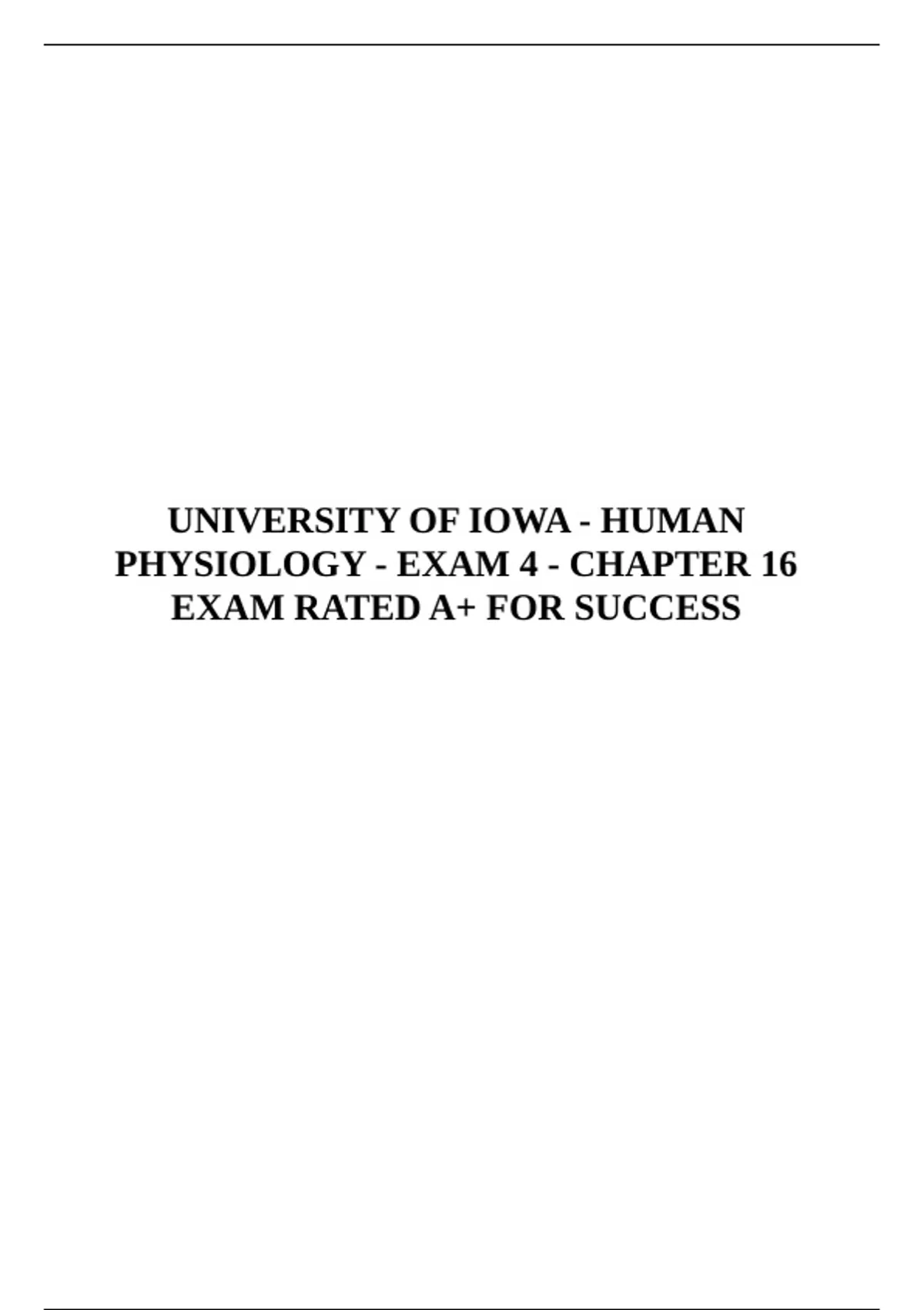 UNIVERSITY OF IOWA - HUMAN PHYSIOLOGY - EXAM 4 - CHAPTER 16 EXAM RATED A+ FOR SUCCESS