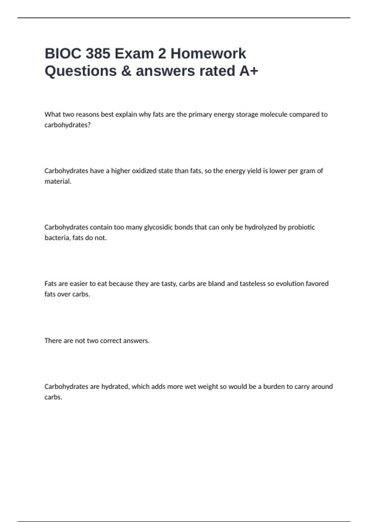 BIOC 385 Exam 2 Homework Questions & answers rated A+