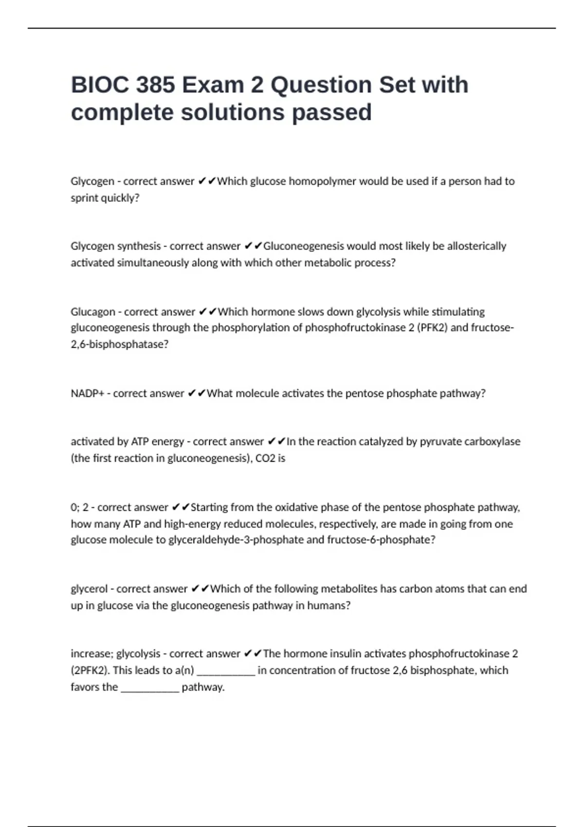 BIOC 385 Exam 2 Question Set with complete solutions passed