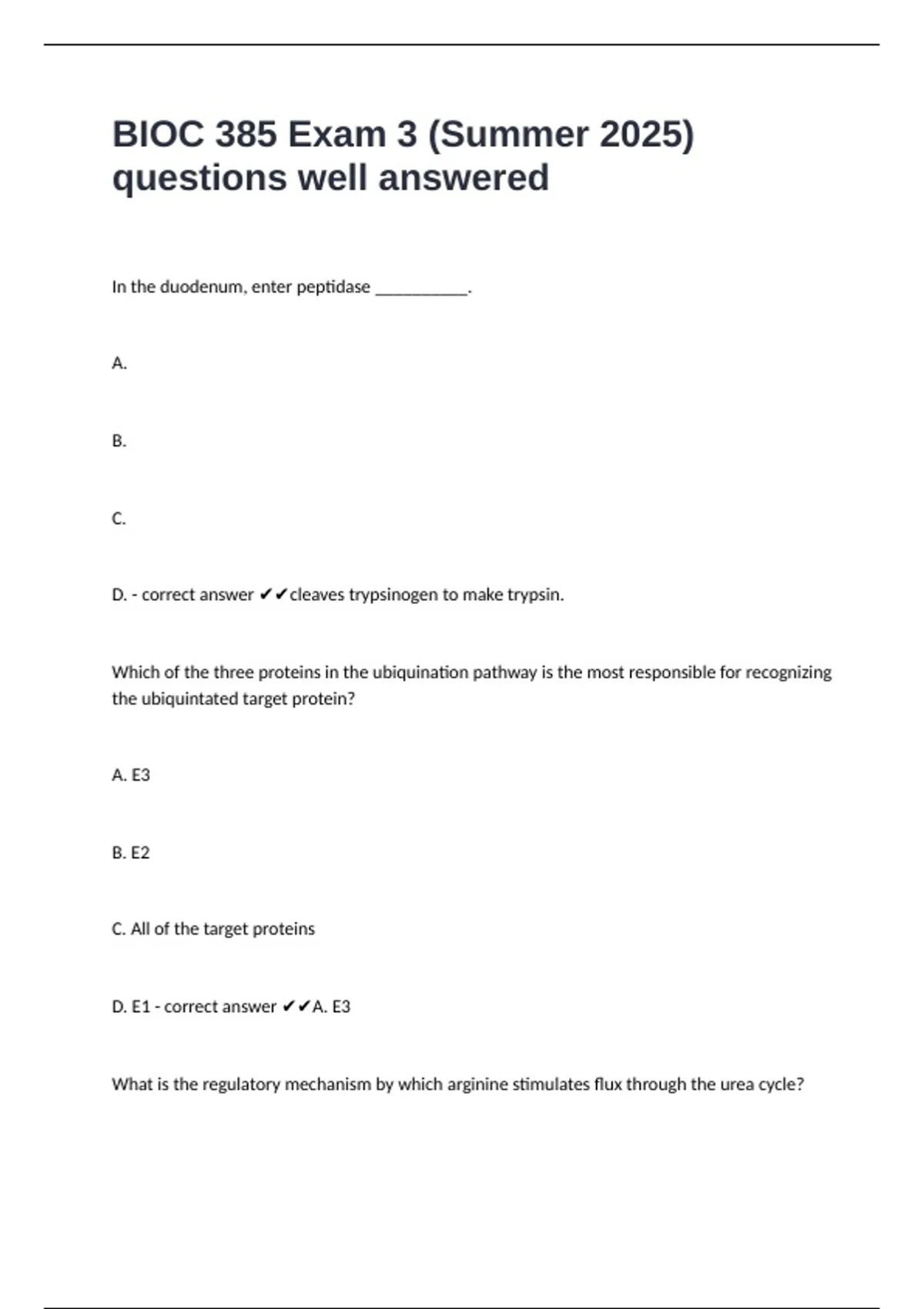 BIOC 385 Exam 3 (Summer 2025) questions well answered