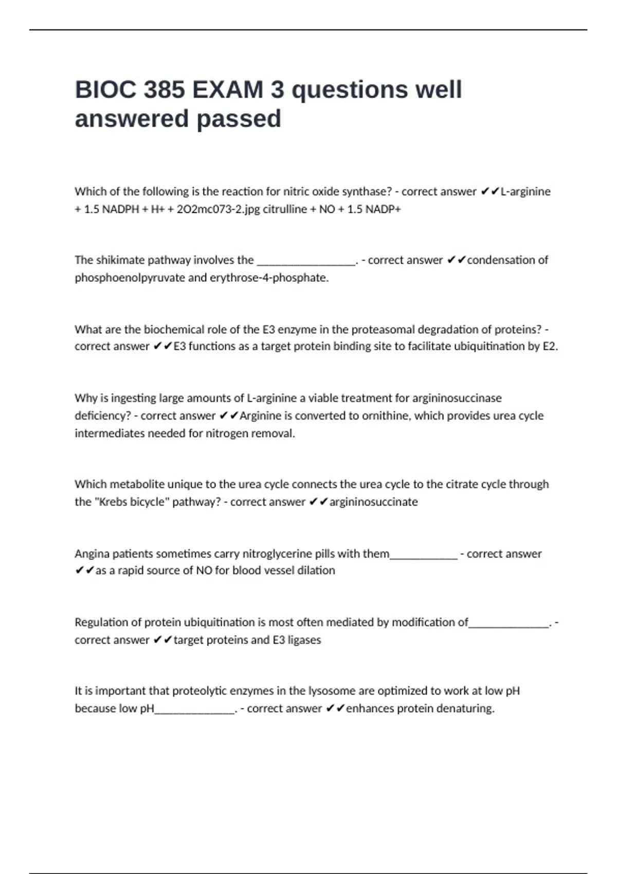 deficiency? - correct answer ✔✔Arginine is converted to ornithine, which provides urea cycle