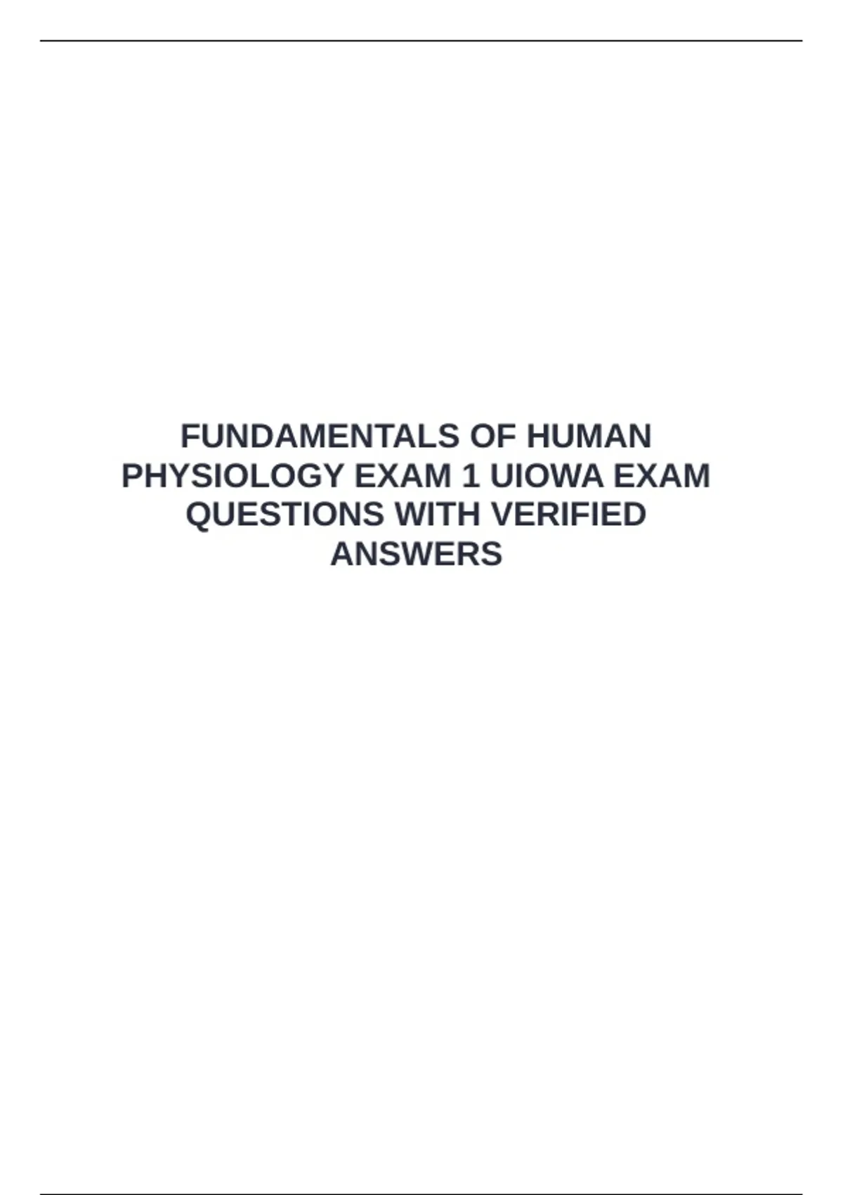 FUNDAMENTALS OF HUMAN PHYSIOLOGY EXAM 1 UIOWA EXAM QUESTIONS WITH VERIFIED ANSWERS