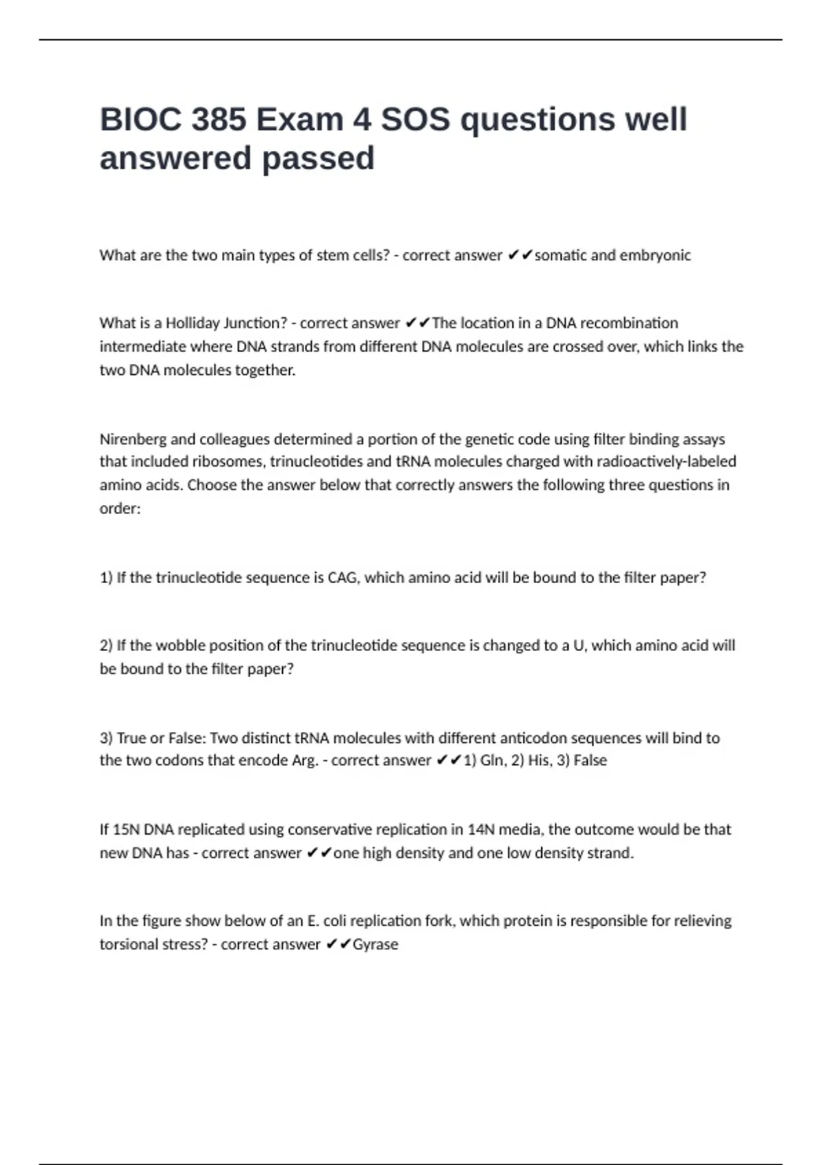 BIOC 385 Exam 4 SOS questions well answered passed