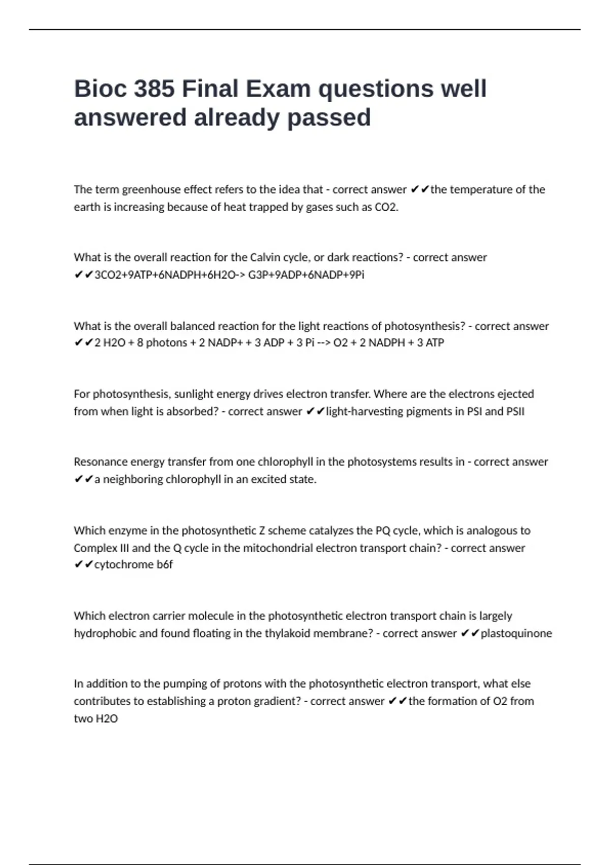chloroplasts? - correct answer ✔✔They would quench each other by energy transfer.