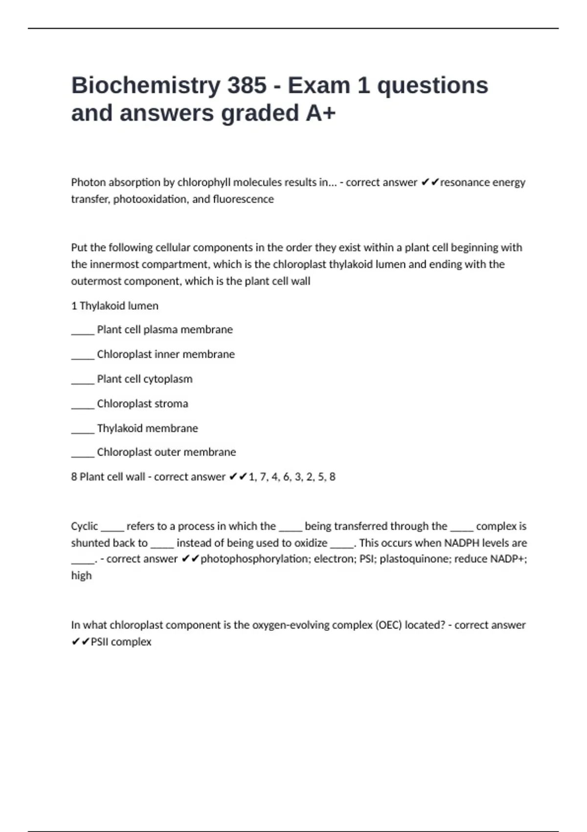 8 Plant cell wall - correct answer ✔✔1, 7, 4, 6, 3, 2, 5, 8