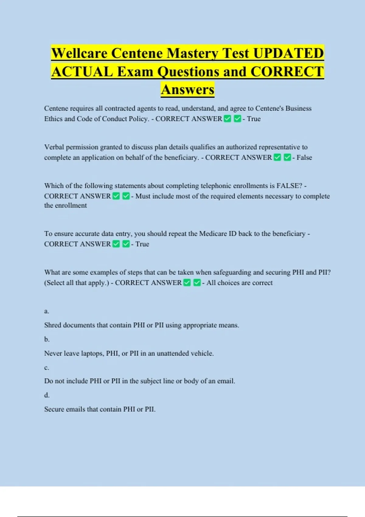 Wellcare Centene Mastery Test UPDATED