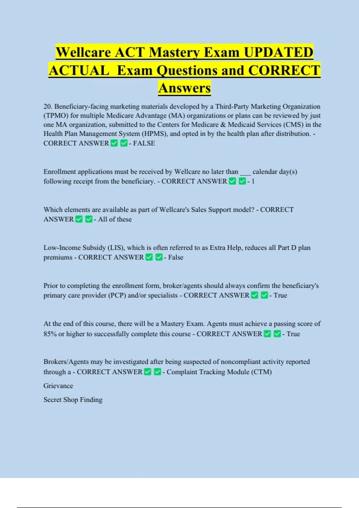 ACTUAL Exam Questions and CORRECT