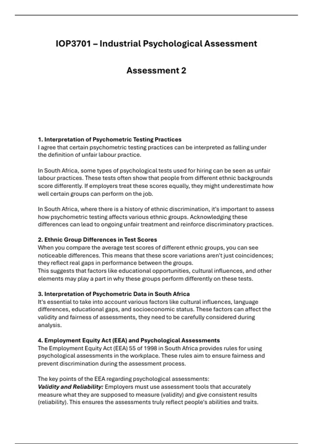 IOP3701 – Industrial Psychological Assessment