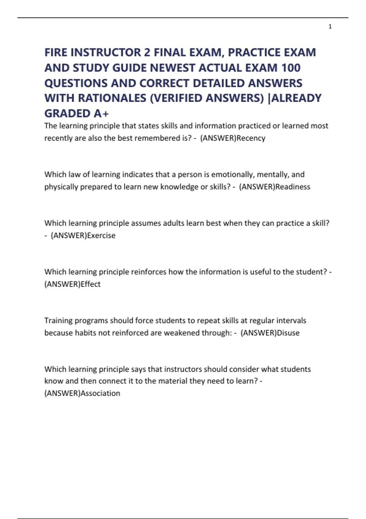 FIRE INSTRUCTOR 2 FINAL EXAM, PRACTICE EXAM