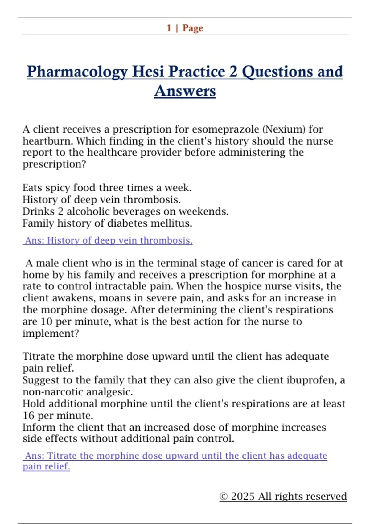 Pharmacology Hesi Practice 2 Questions and
