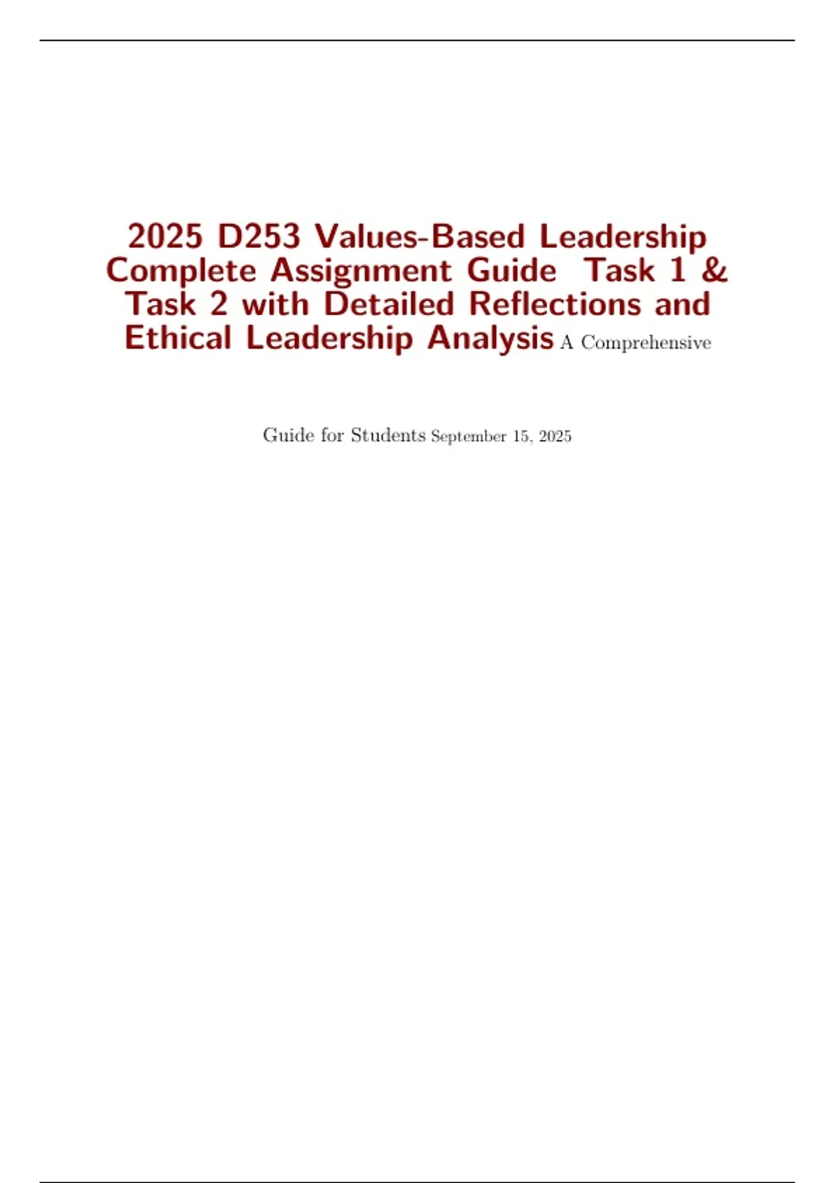 2025 D253 Values-Based Leadership Complete Assignment Guide Task 1 & Task 2 with Detailed Reflections and Ethical Leadership Analysis A