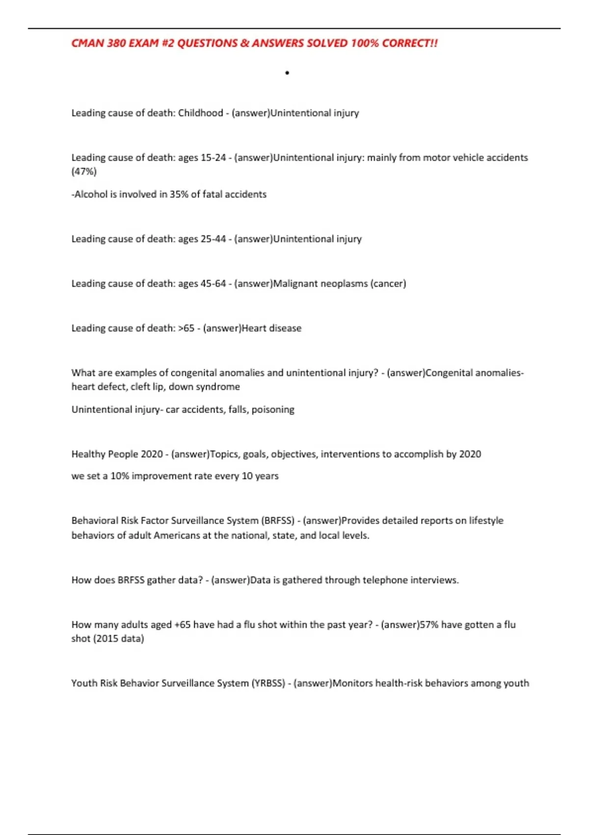 , CMAN 380 EXAM #2 QUESTIONS & ANSWERS SOLVED 100% CORRECT!!