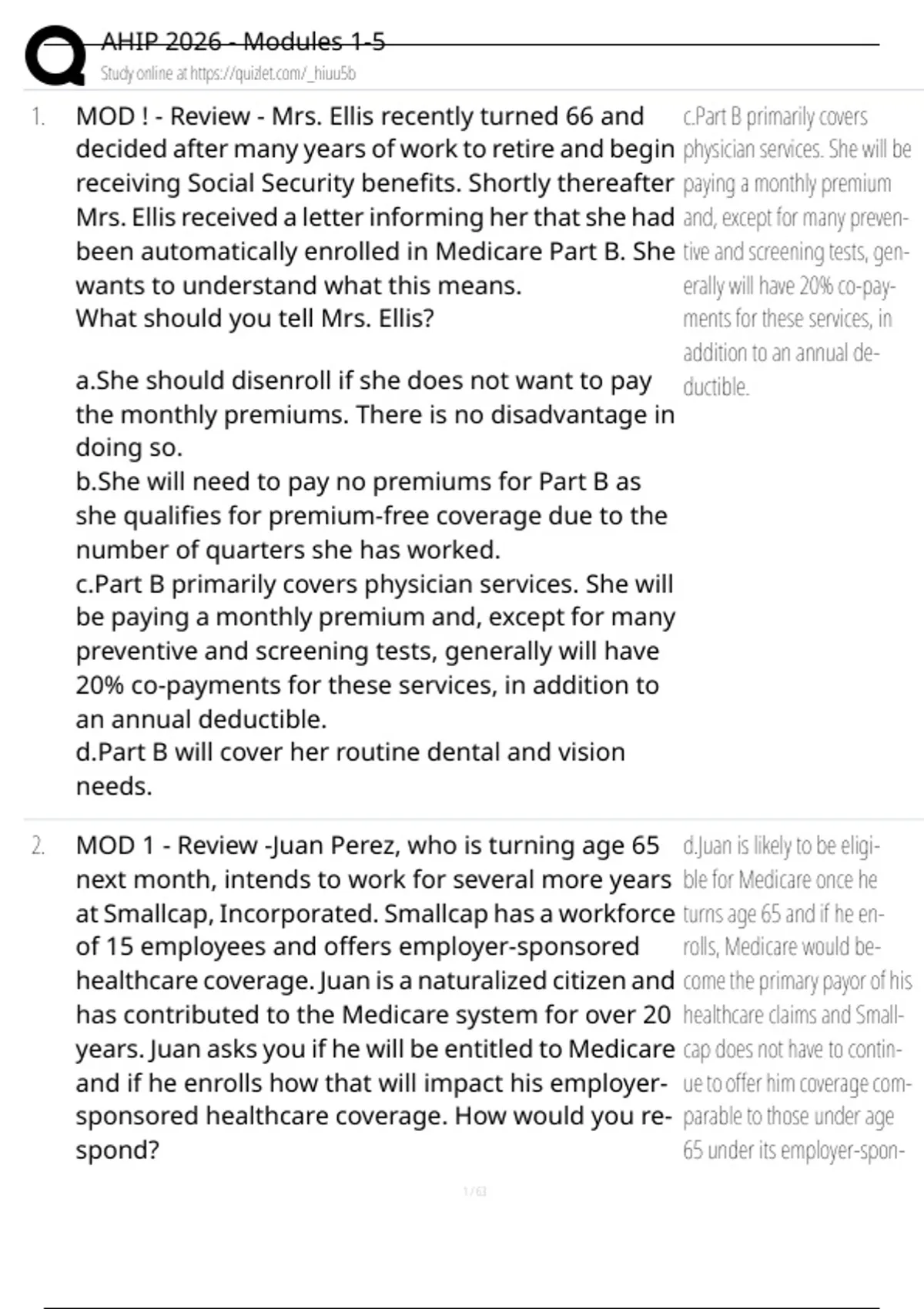1. MOD ! - Review - Mrs. Ellis recently turned 66 and c.Part B primarily covers