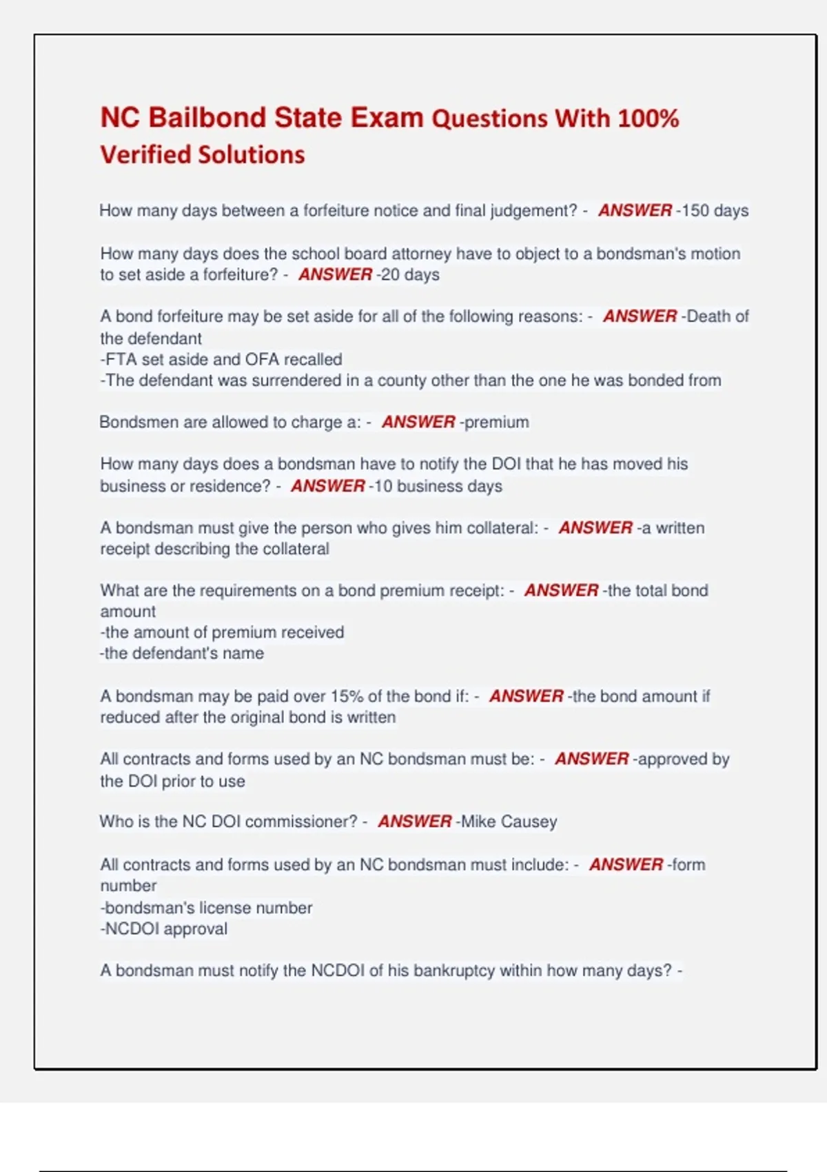 All contracts and forms used by an NC bondsman must be: - ANSWER -approved by