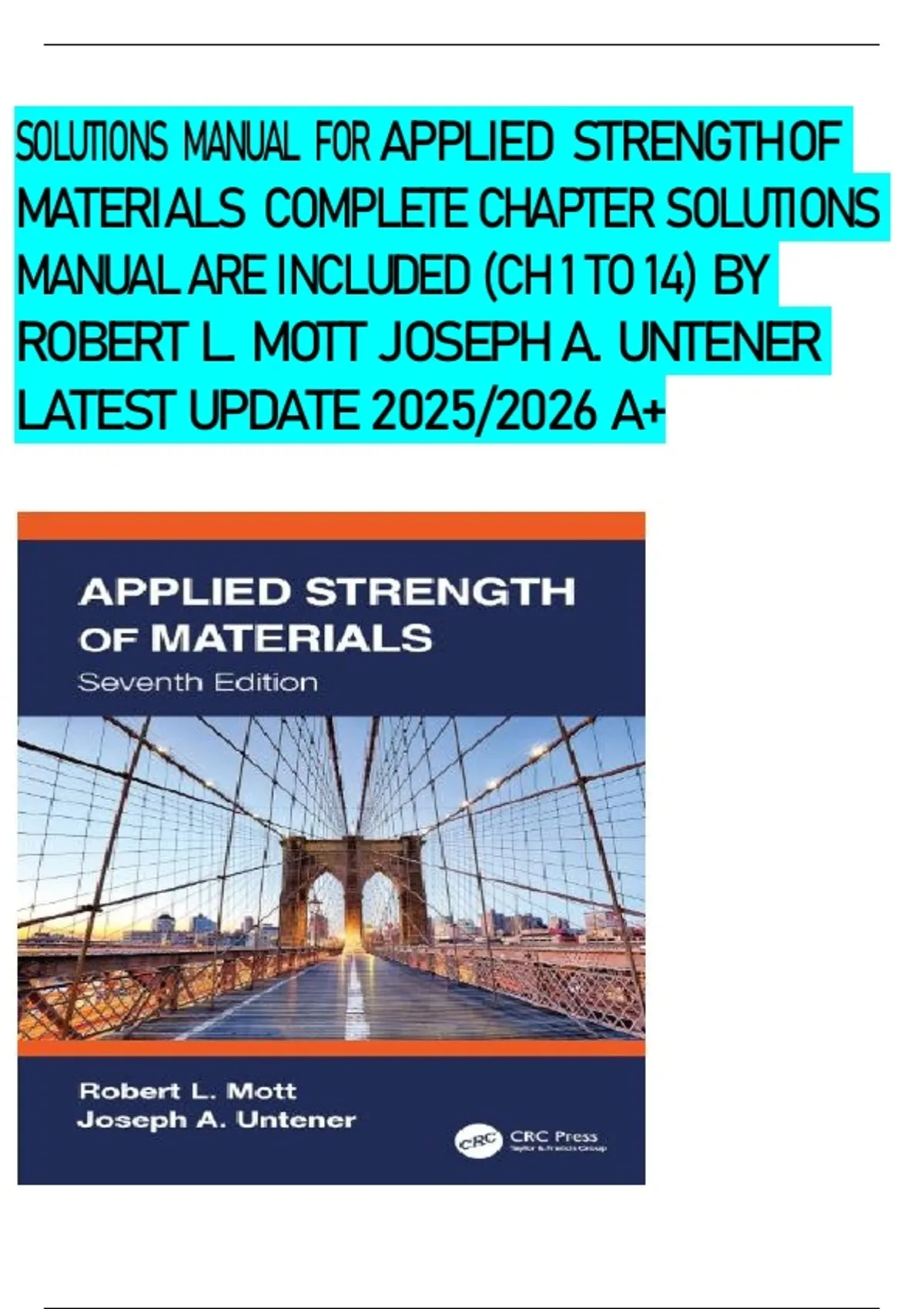 Solution Manual for Applied Strength of Materials, 7th Edition by Robert L. Mott | All Chapters 1-14| Latest Edition 2025/2026 A+