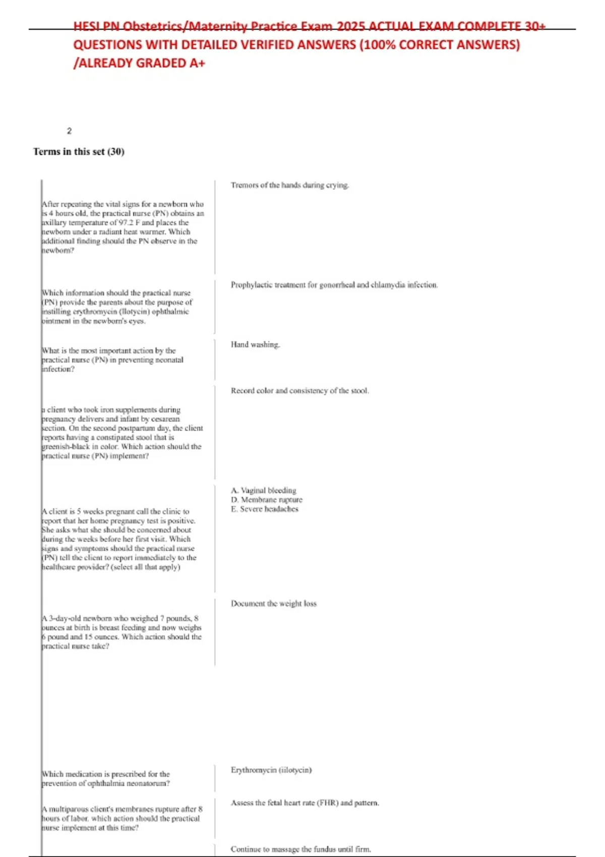 HESI PN Obstetrics/Maternity Practice Exam 2025 ACTUAL EXAM COMPLETE 30+ QUESTIONS WITH DETAILED VERIFIED ANSWERS (100% CORRECT ANSWERS) /ALREADY GRADED A+