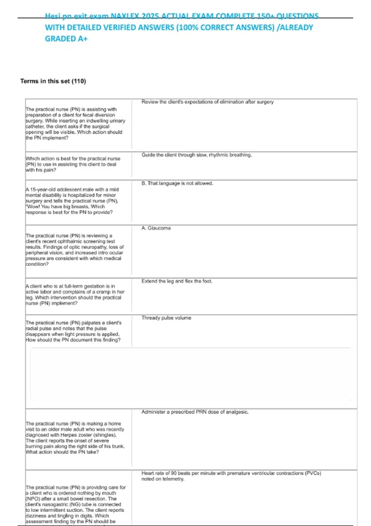 Hesi pn exit exam NAXLEX 2025 ACTUAL EXAM COMPLETE 150+ QUESTIONS