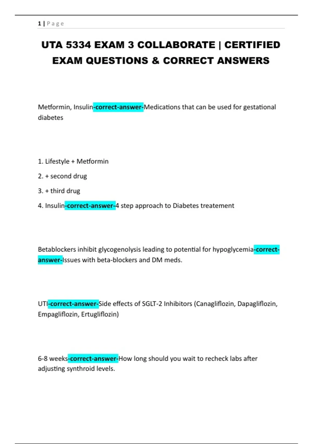 UTA 5334 EXAM 3 COLLABORATE | CERTIFIED