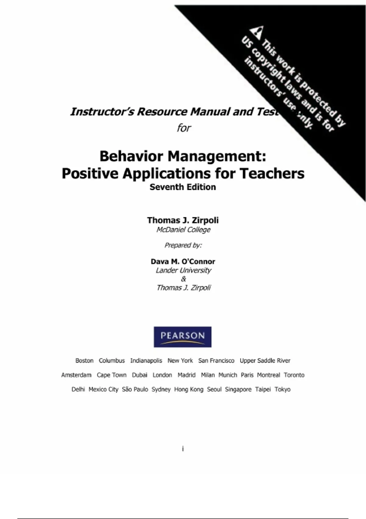 Behavior Management: Positive Applications for Teachers (7th Edition, Thomas J. Zirpoli, Pearson) – Complete Solutions Manual and Test Bank| 100% PASS ASSURED