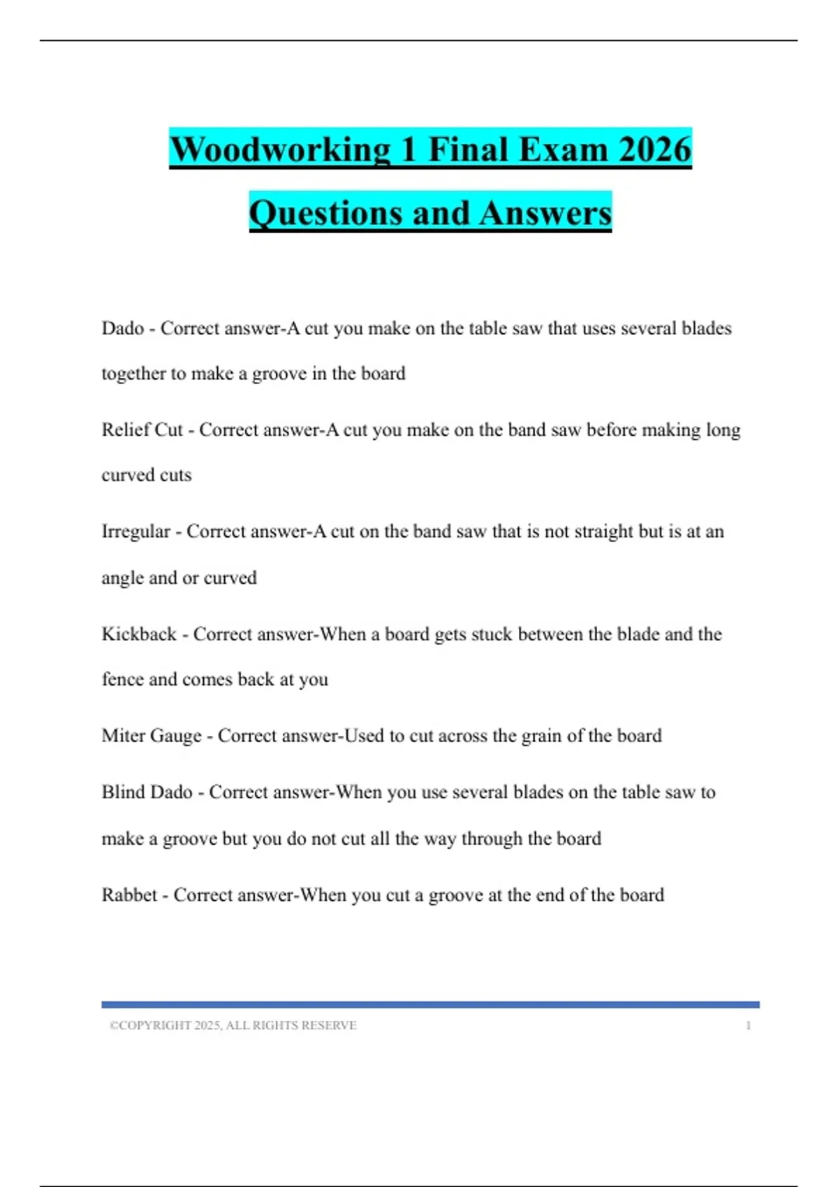 Woodworking 1 Final Exam 2026