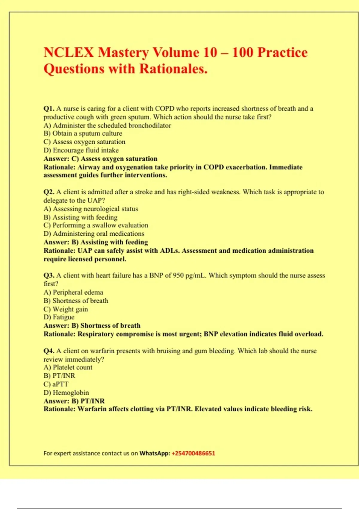 NCLEX Mastery Volume 10 – 100 Practice Questions with Rationales.