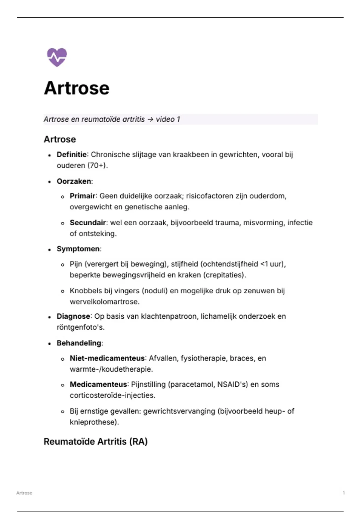 Artrose en reumatoïde artritis → video 1