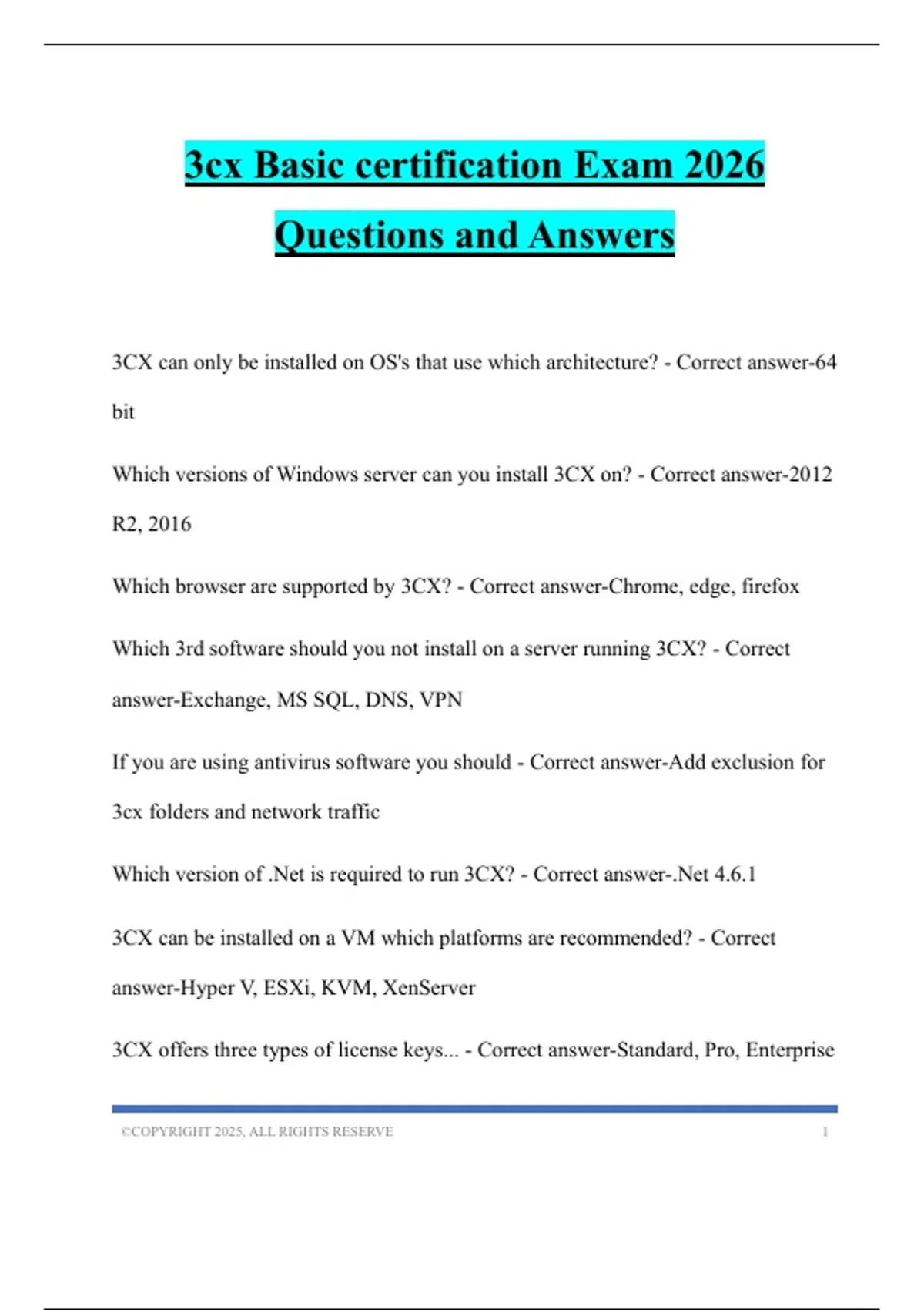 3CX can only be installed on OS's that use which architecture? - Correct answer-64