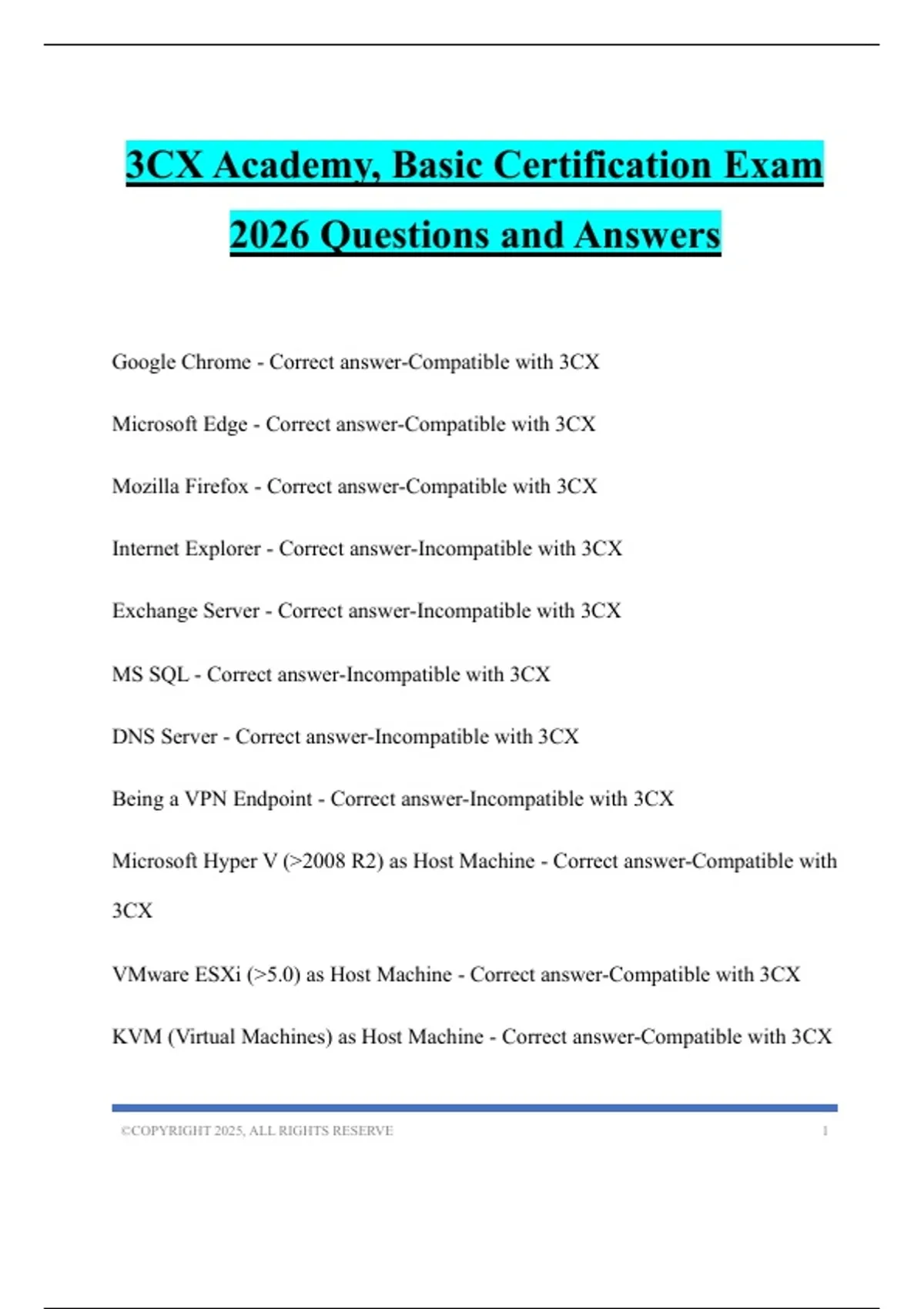 3CX Academy, Basic Certification Exam 2026 Questions and Answers