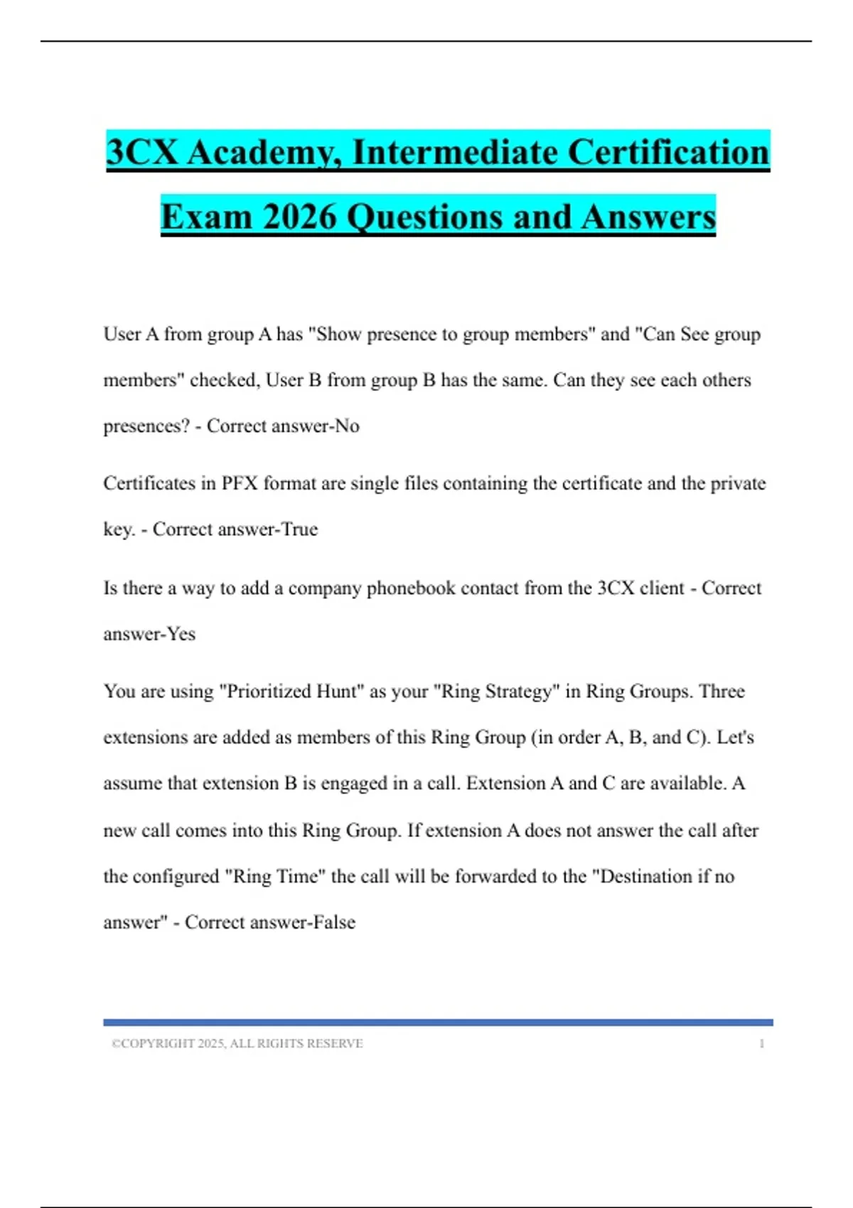 3CX Academy, Intermediate Certification Exam 2026 Questions and Answers