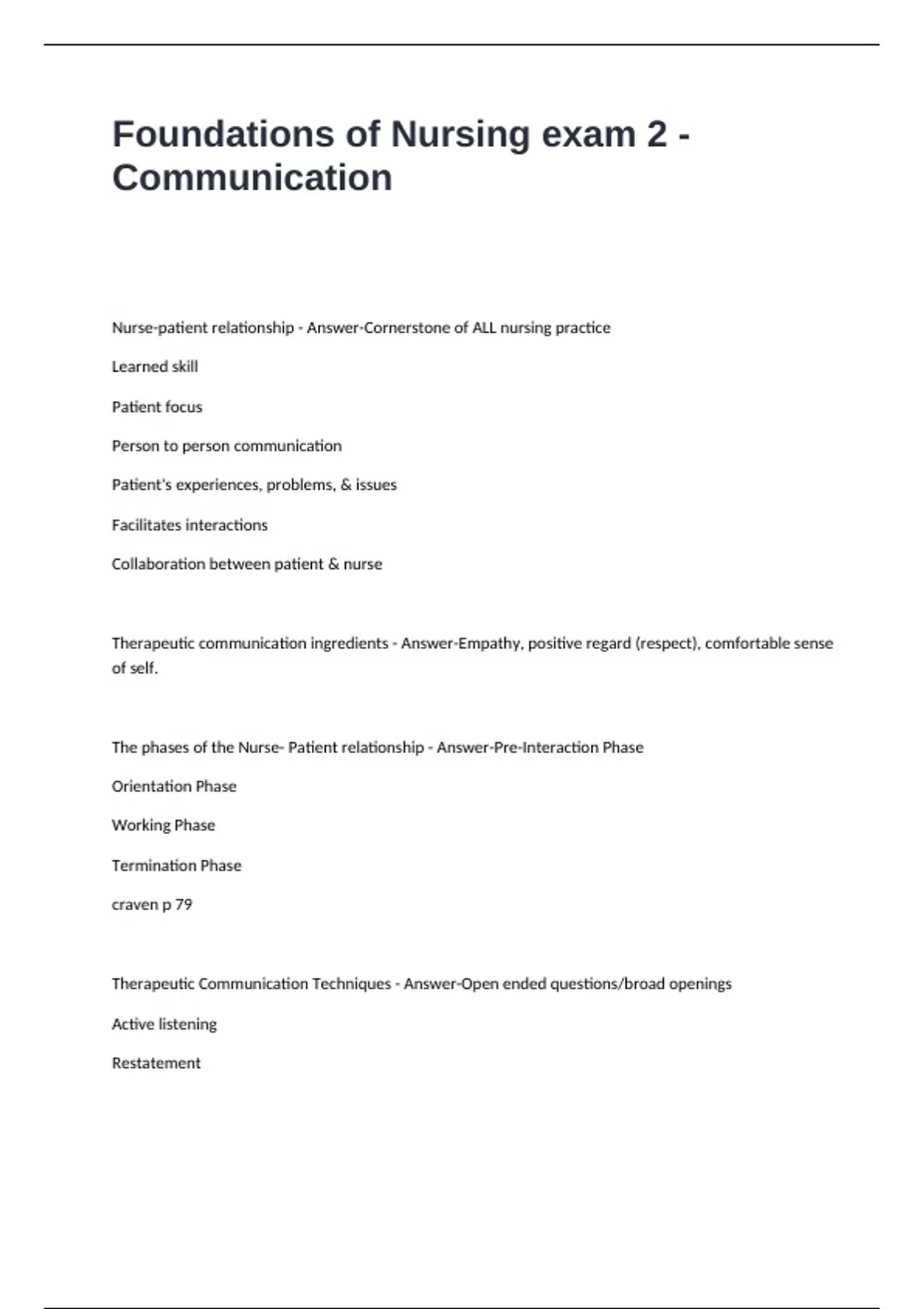 Nurse-patient relationship - Answer-Cornerstone of ALL nursing practice