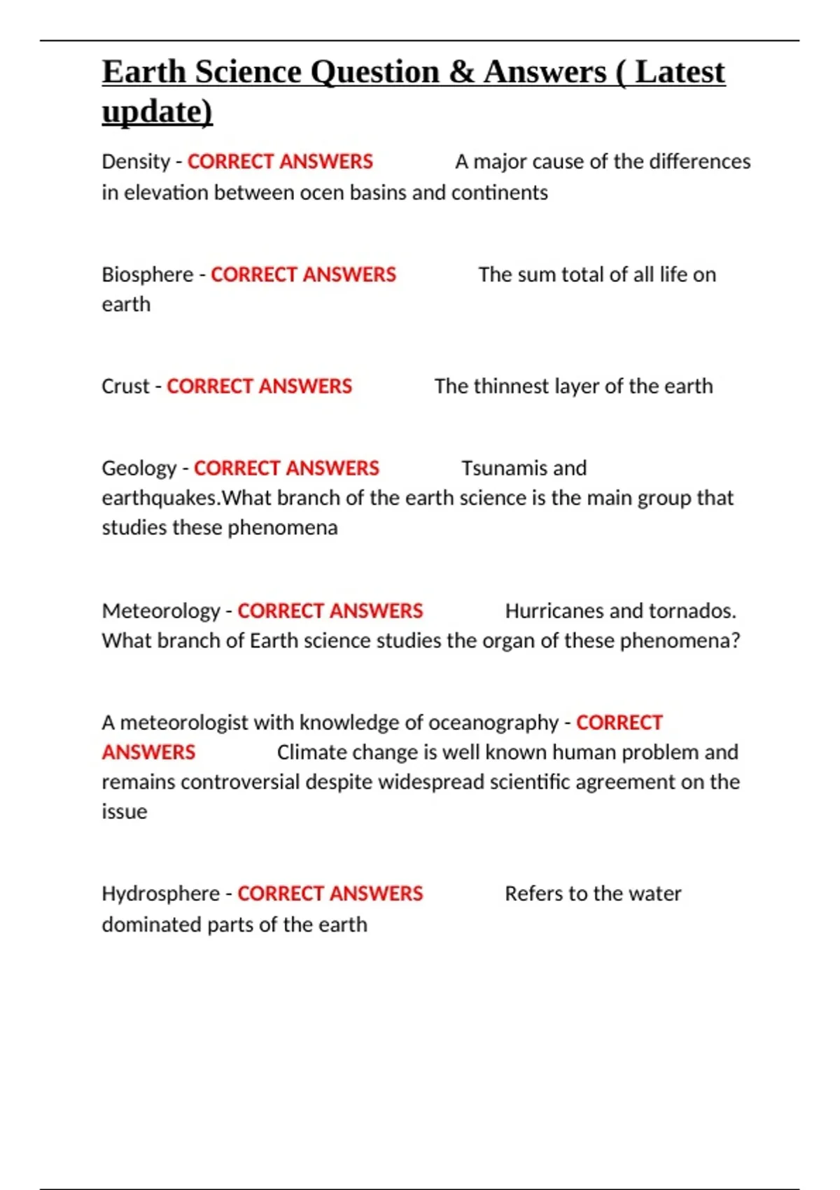 Earth Science Question & Answers ( Latest update).docx