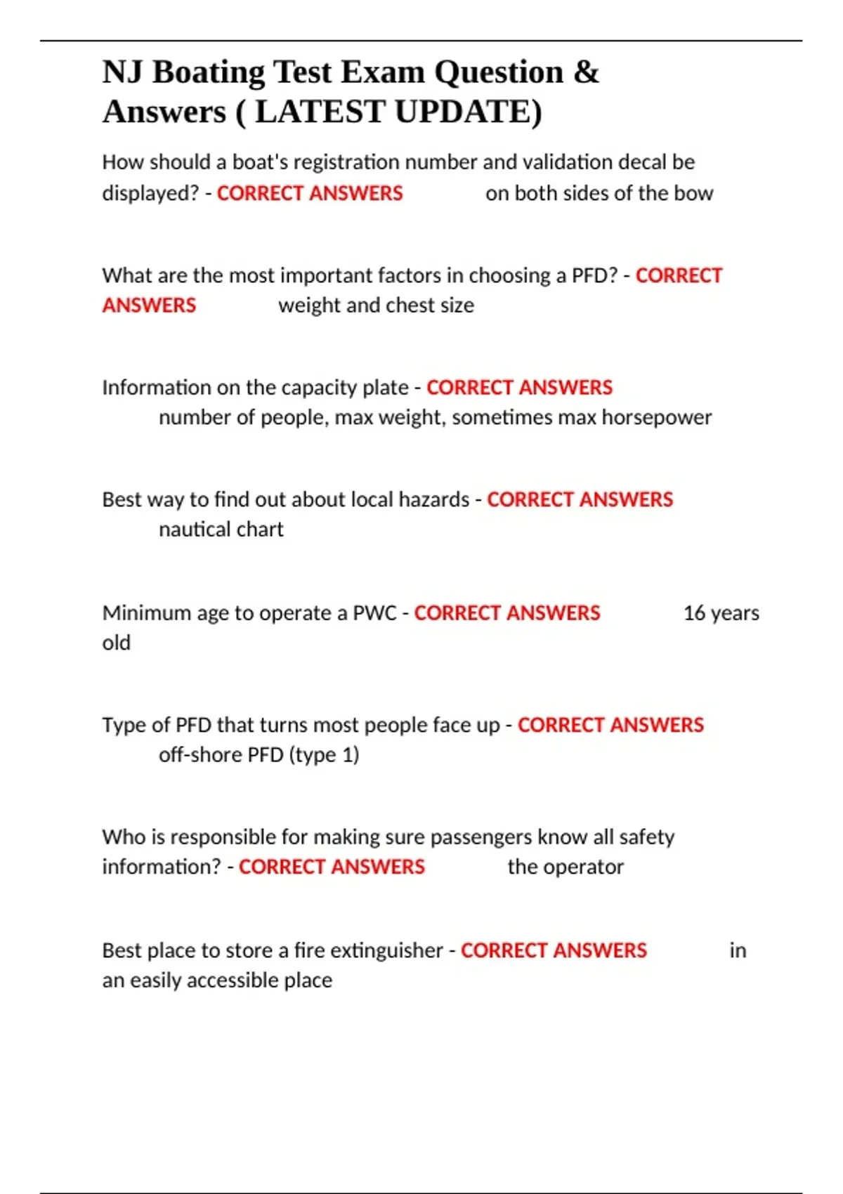 NJ Boating Test Exam Question &