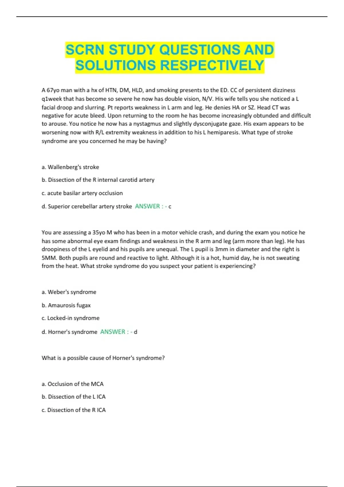 SCRN STUDY QUESTIONS AND SOLUTIONS RESPECTIVELY