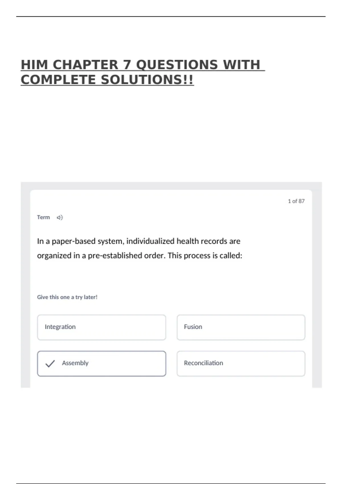 HIM CHAPTER 7 QUESTIONS WITH COMPLETE SOLUTIONS!!
