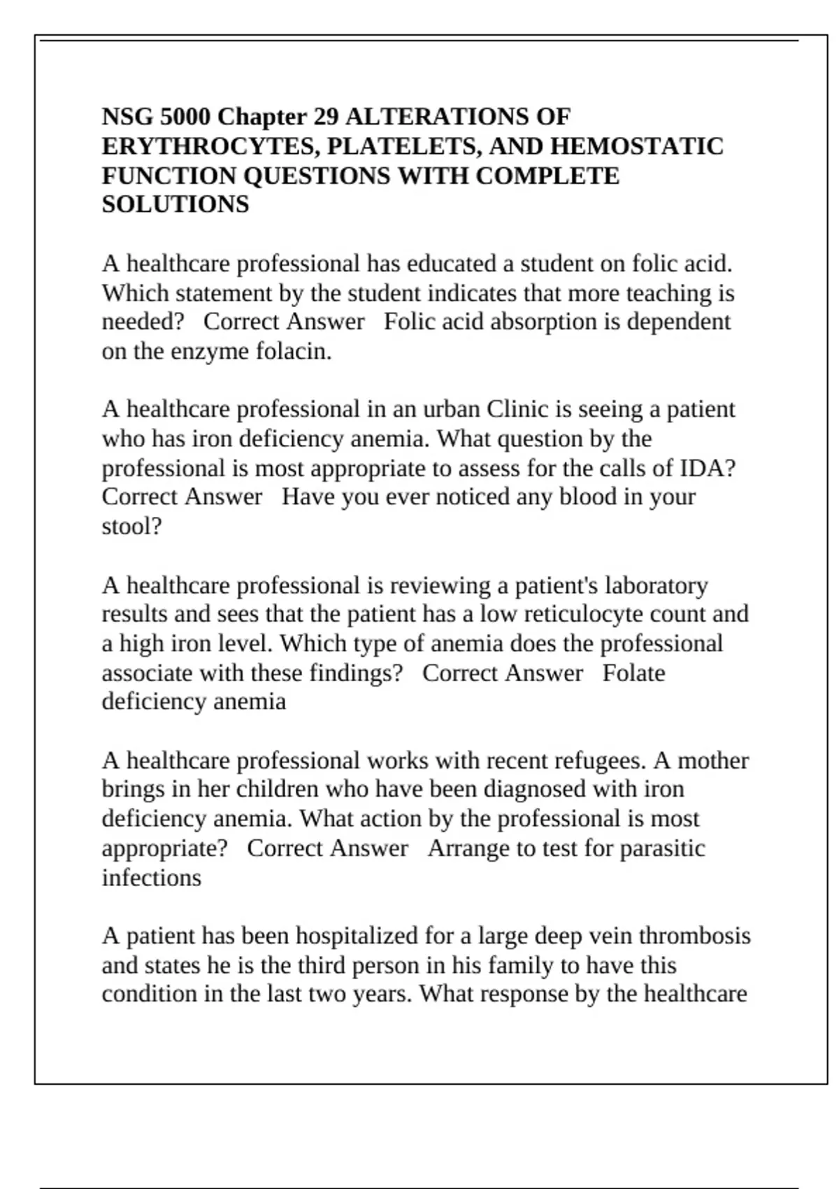 NSG 5000 Chapter 29 ALTERATIONS OF ERYTHROCYTES, PLATELETS, AND HEMOSTATIC FUNCTION QUESTIONS WITH COMPLETE SOLUTIONS
