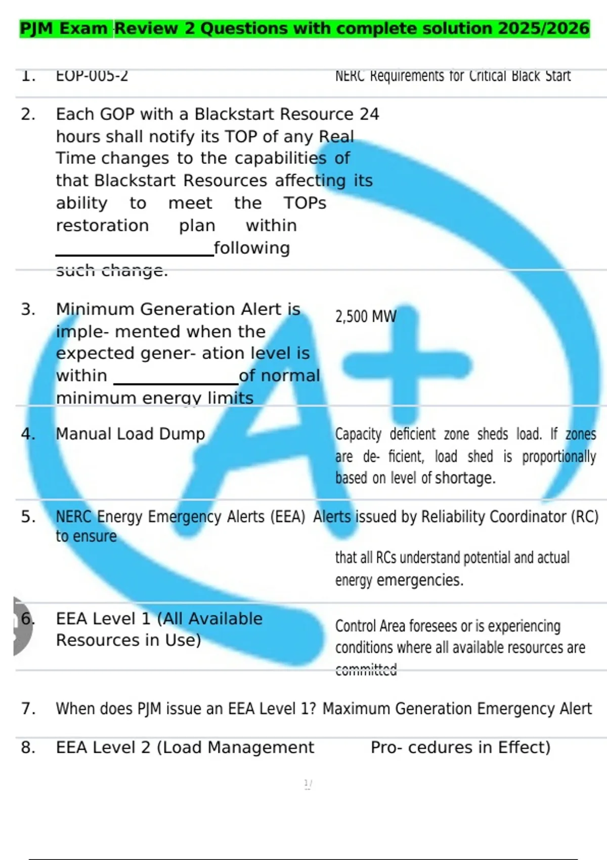 , PJM Exam Review 2 Questions with complete solution 2025/2026