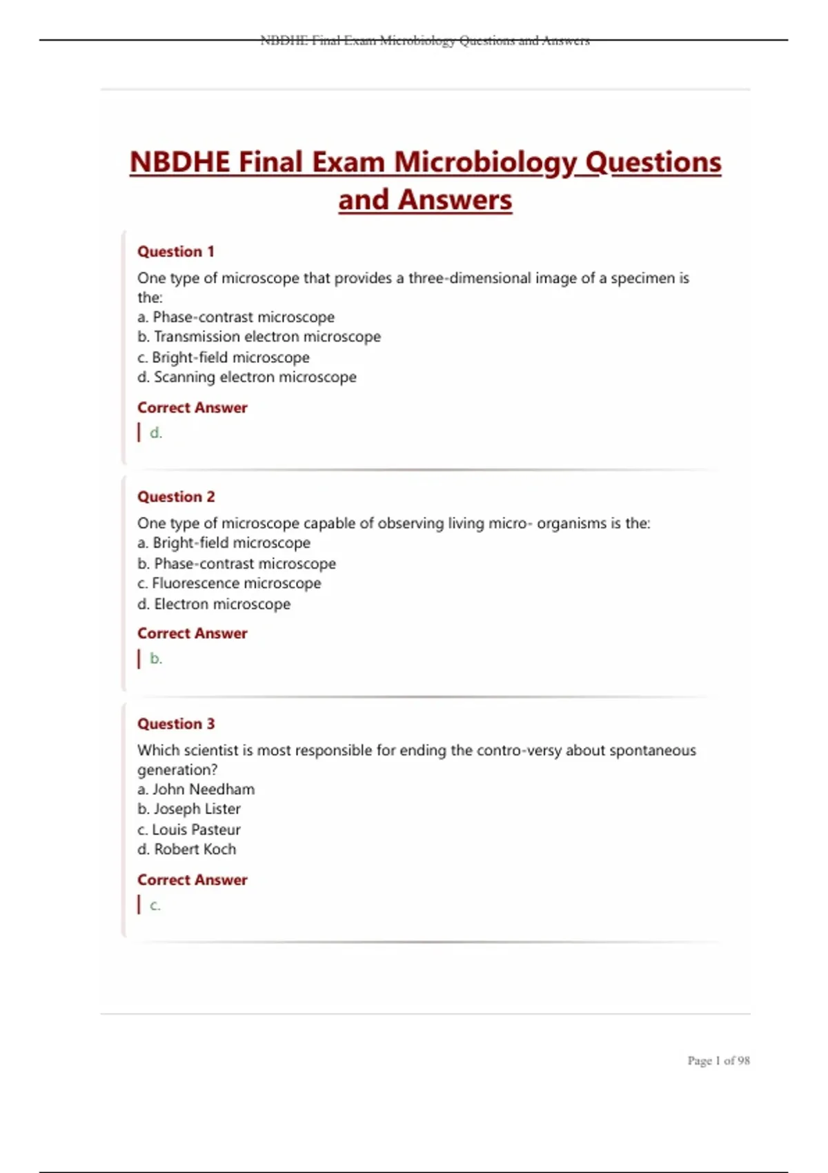NBDHE Final Exam Microbiology Questions and Answers