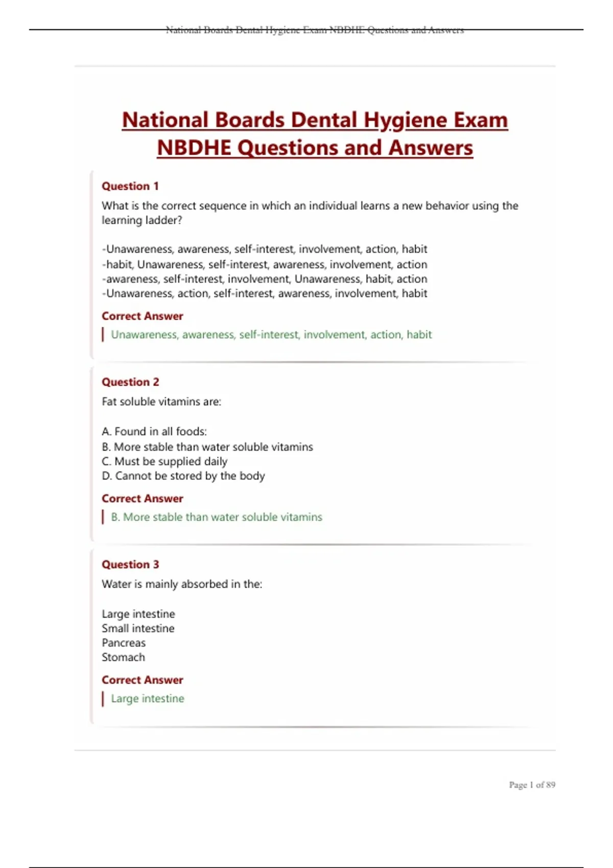, National Boards Dental Hygiene Exam NBDHE Questions and Answers