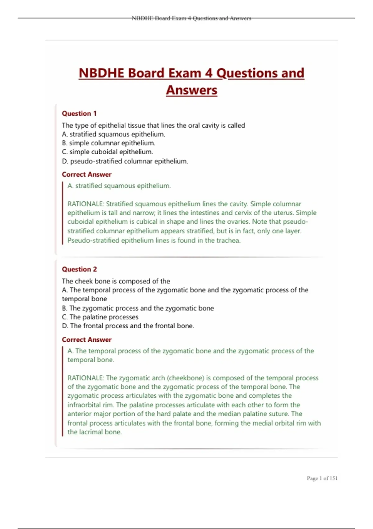 NBDHE Board Exam 4 Questions and Answers.