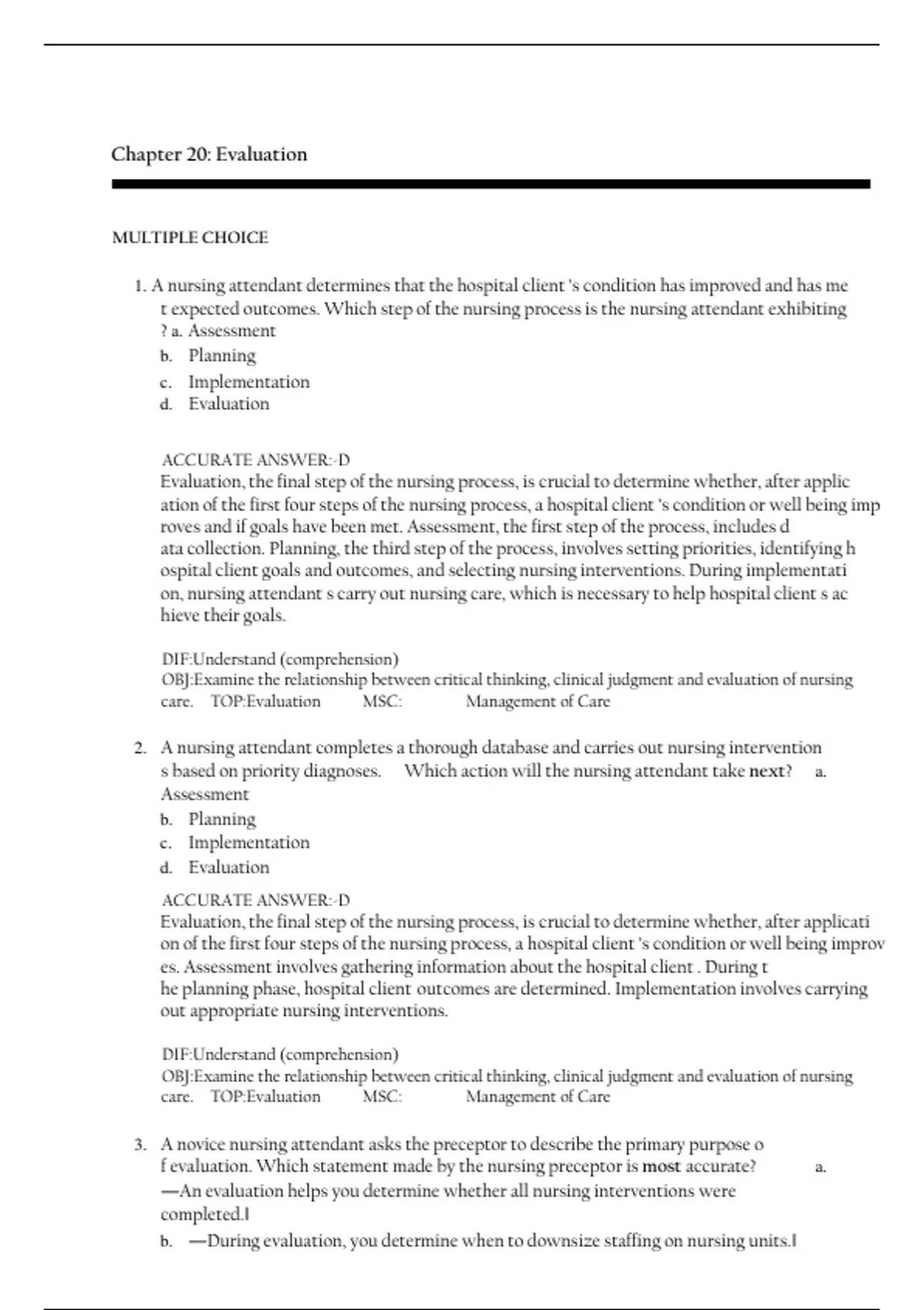 ou do not simply determine whether nursing interventions were completed. The evaluation p
