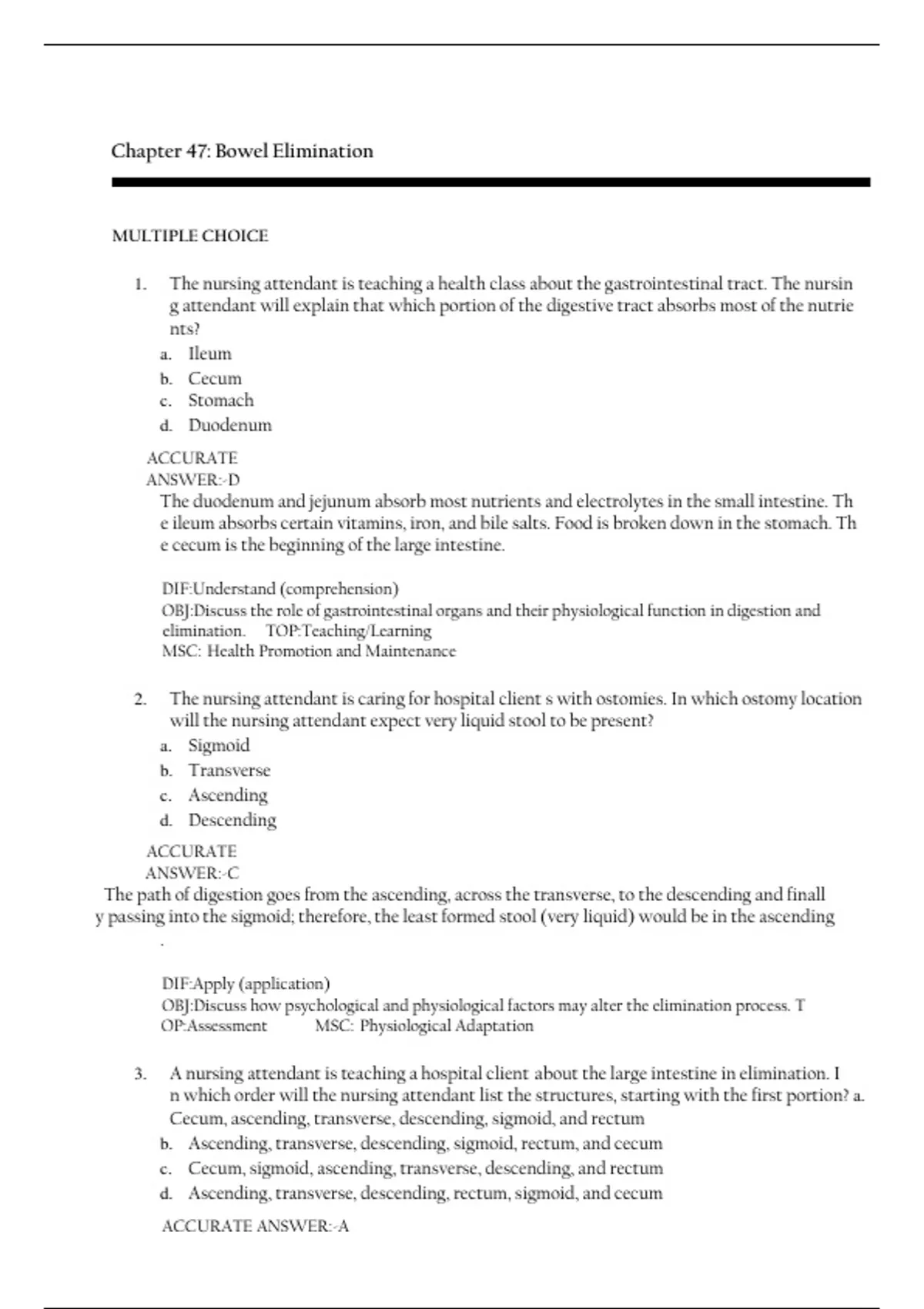 at ions in bowel elimination. TOP:Planning MSC: Management of Care
