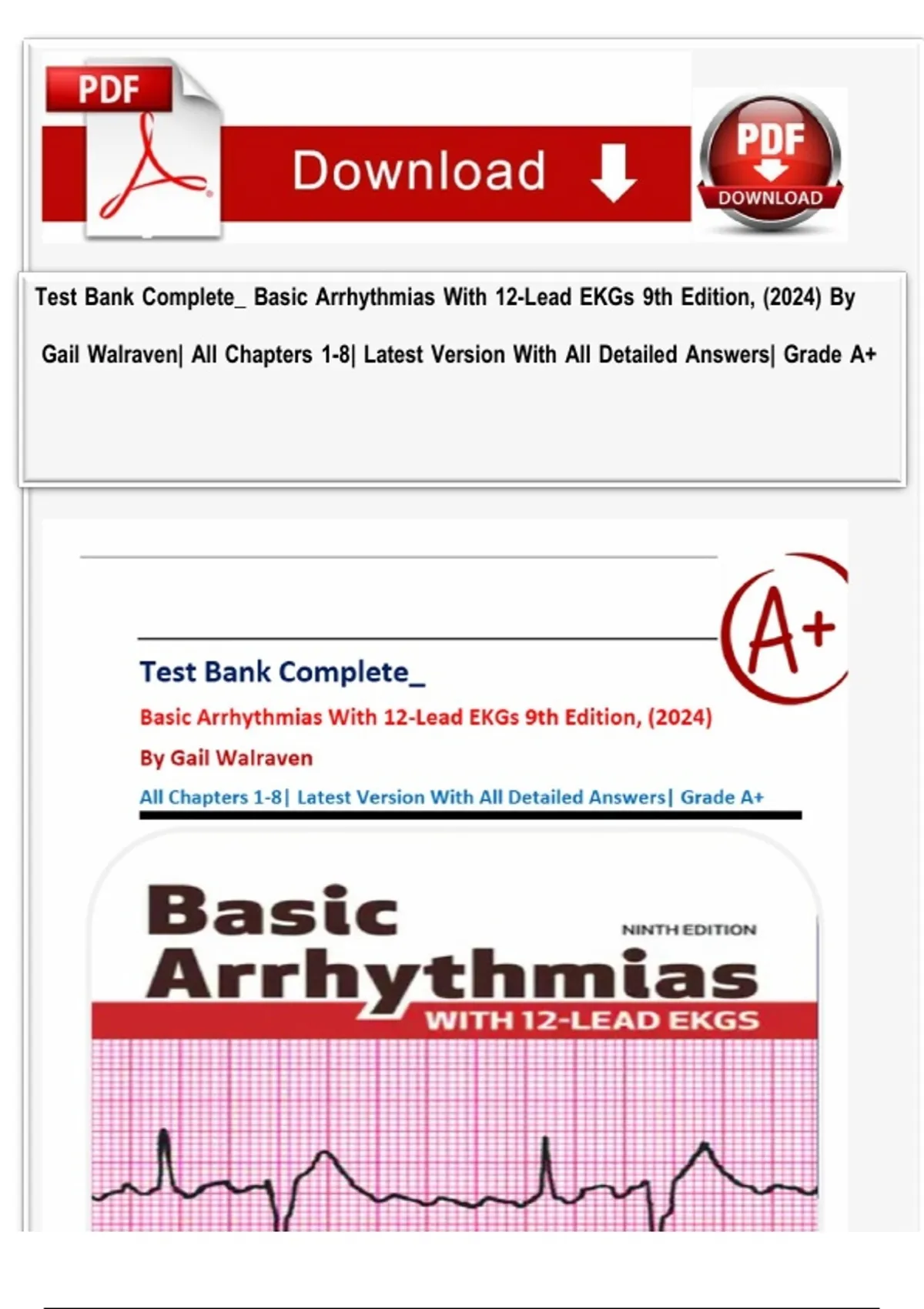 Test Bank Complete_ Basic Arrhythmias With 12-Lead EKGs 9th Edition, (2024) By Gail Walraven| All Chapters 1-8| Latest Version With All Detailed Answers| Grade A+