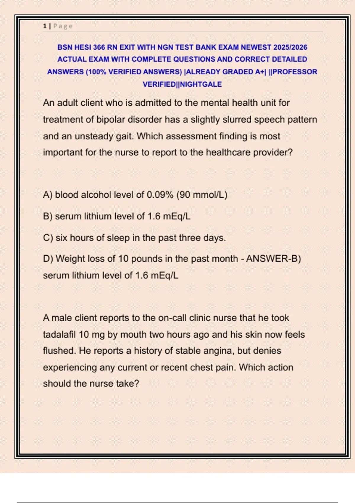BSN HESI 366 RN EXIT WITH NGN TEST BANK EXAM NEWEST 2025/2026