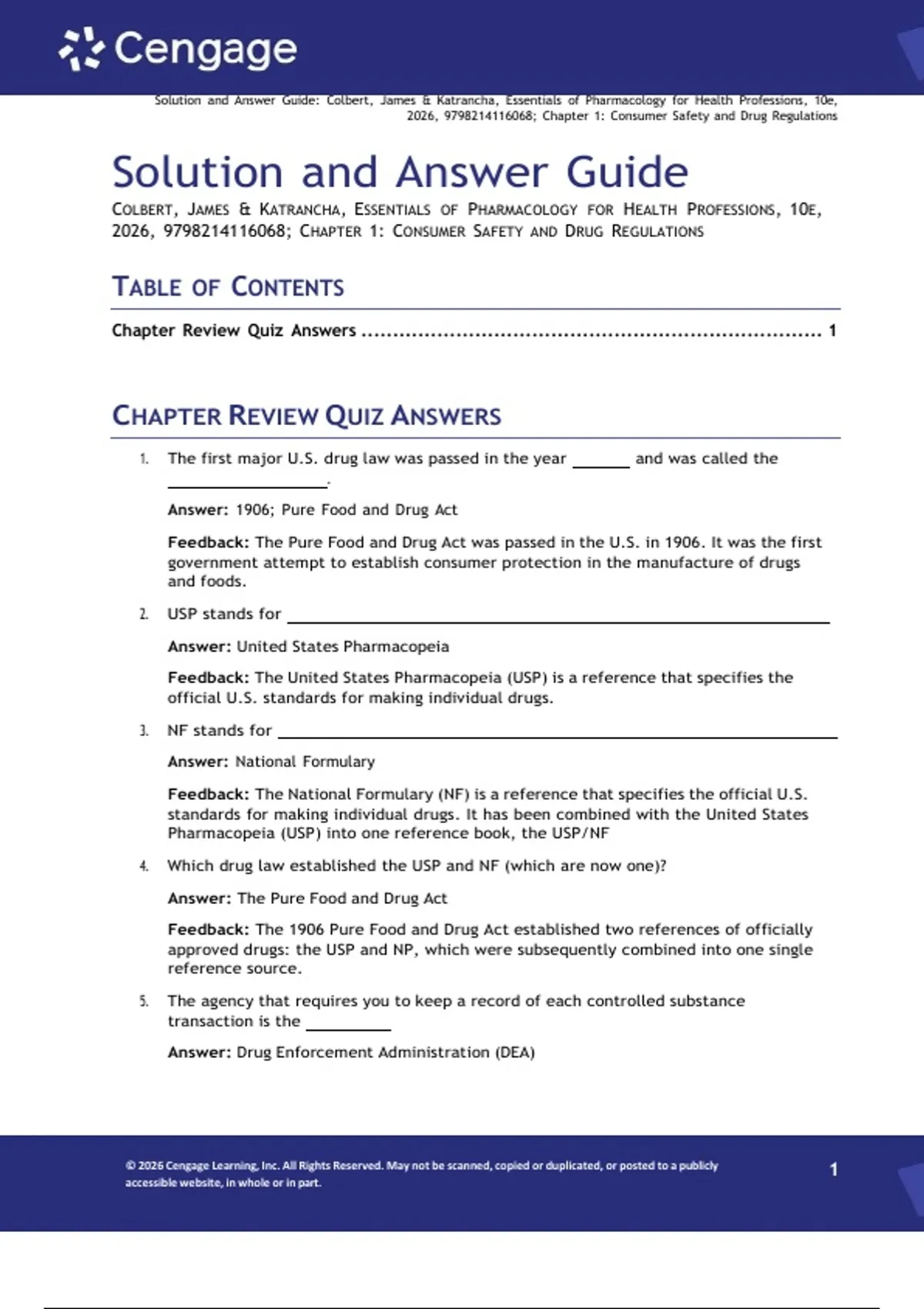 , Solution and Answer Guide: Colbert, James & Katrancha, Essentials of Pharmacology for Health Professions, 10e,