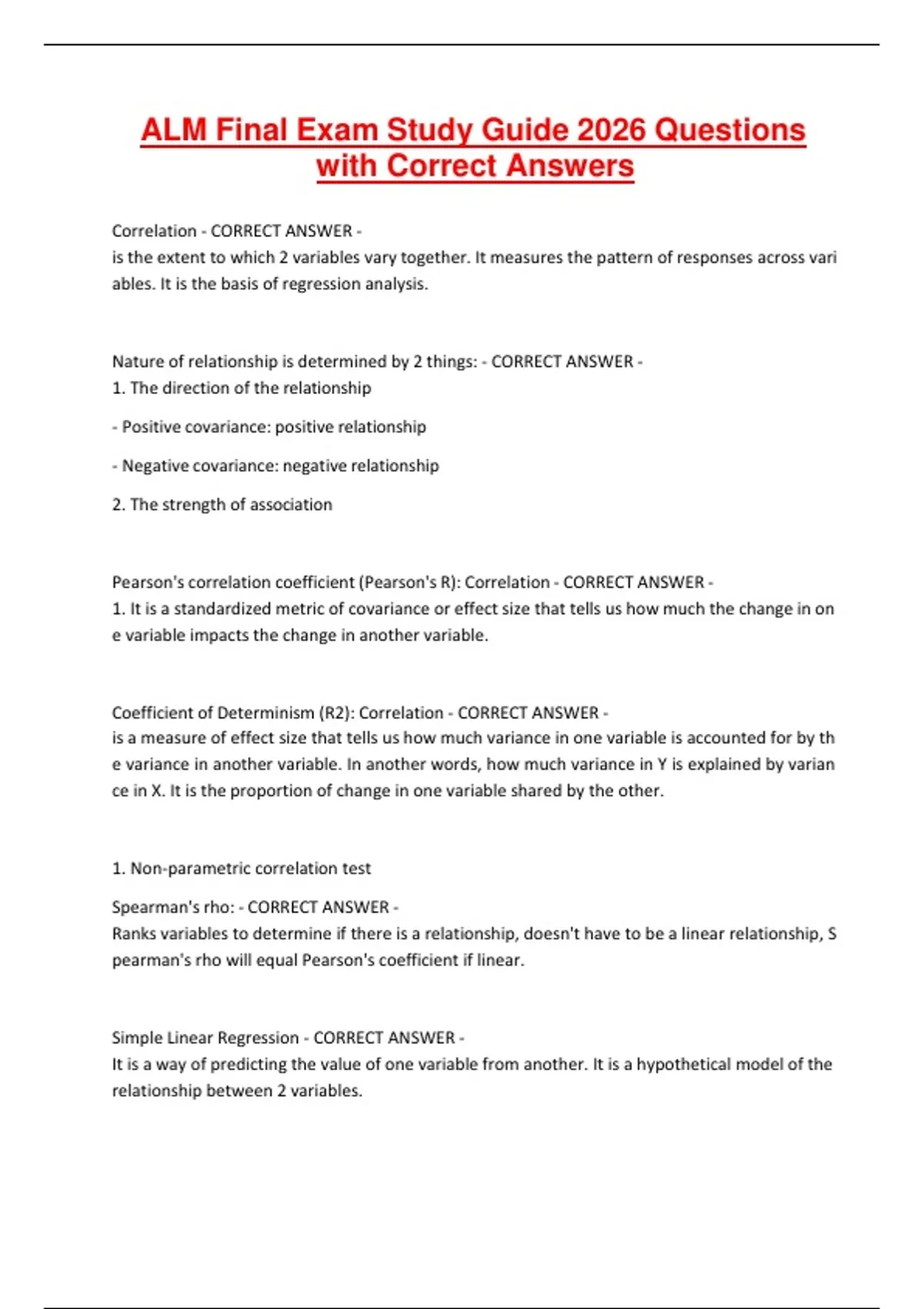 ALM Final Exam Study Guide 2026 Questions with Correct Answers