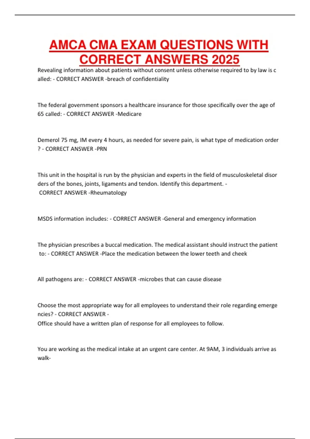 AMCA CMA EXAM QUESTIONS WITH CORRECT ANSWERS 2025