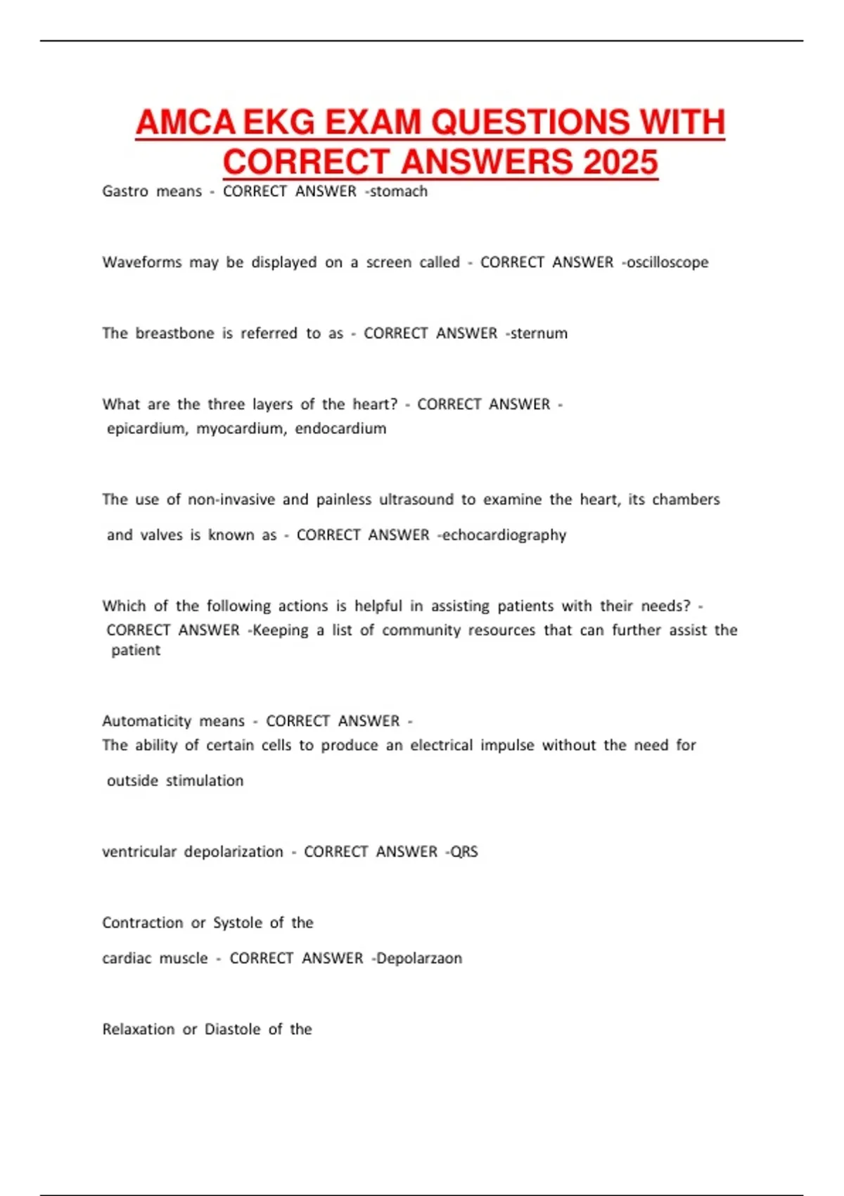 AMCA EKG EXAM QUESTIONS WITH CORRECT ANSWERS 2025