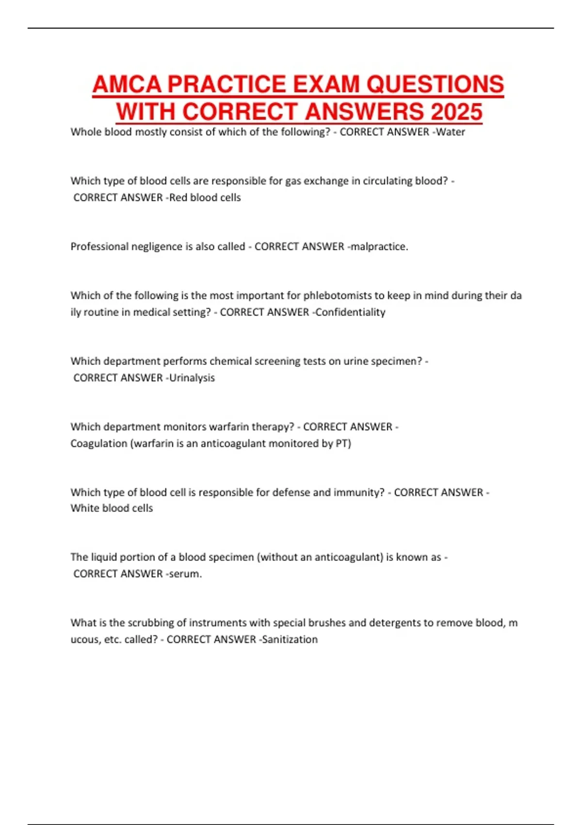 AMCA PRACTICE EXAM QUESTIONS WITH CORRECT ANSWERS 2025