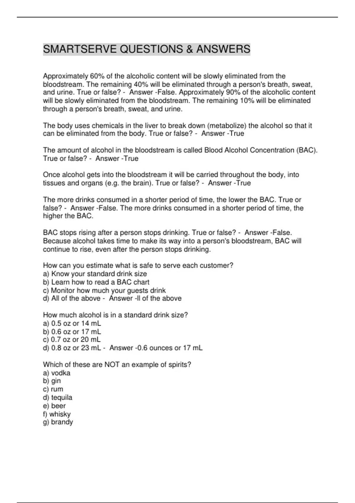 and urine. True or false? - Answer -False. Approximately 90% of the alcoholic content